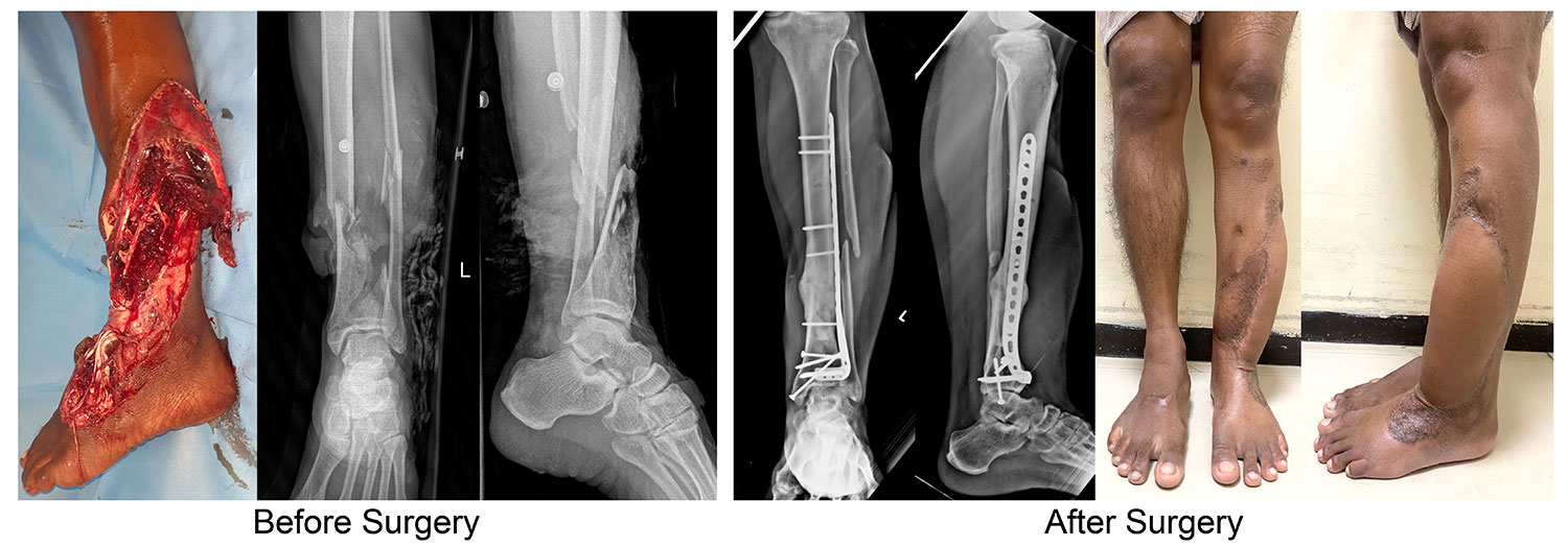 However amputation was a challenge in the developing world as it not only had a social stigma, but also seriously disadvantaged the patient due to life style of the developing countries. Further good quality prosthesis was not available in rural areas. These challenges led us to develop GHOISS (Ganga Hospital Open Injury Severity Score) which allowed us to have a clear objective method of assessing open injuries and also various innovations which allowed reduction of stages of reconstruction and cut down costs. This protocol is now followed very widely in developing countries which has allowed saving of amputation of many limbs.
