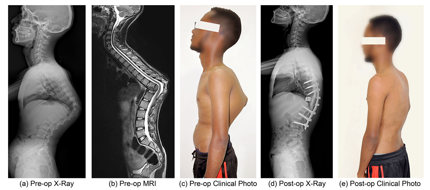 Severe case of post-tuberculosis infective kyphosis. This is still a major problem in the developing world. Patients frequently get severe pain and neurological deficits. Our clinical research was successful in evolving Spine at risk' signs which will help to identify children who are at risk for such progressive deformity and selectively subject them to spinal stabilization. This is very helpful to avoid unnecessary surgical morbidity and also preserve resources. We also evolved a corrective osteotomy procedure performed only from posterior approach. This also helped to reduce mortality and morbidity and improve results significantly. Such clinical research is vital for the developing world.