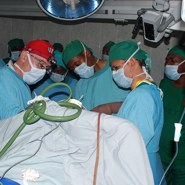 Performing brain tumor surgery in South City Hospital, Karachi, Pakistan