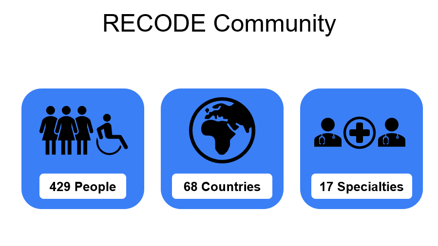 The AO Spine RECODE-DCM community connects surgeons, healthcare professionals, researchers, and people with lived experience of DCM, from all regions of the globe, to accelerate progress in DCM. The equitable input from all stakeholders is crucial to ensure that the outcomes of the initiative are relevant to all who live or work with the disease.