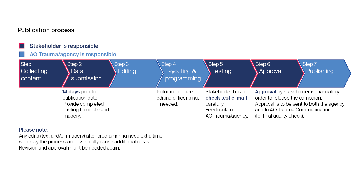 To send an AO Trauma e-blast via the AO's mass e-mailing program Pardot, please follow this publication process and fill in the template which you can download below. For any questions, please contact us.