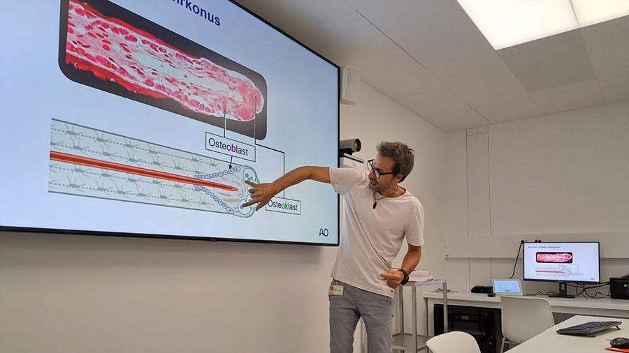 Die Veranstaltung, die nach den bewährten Vorgaben der AO durchgeführt wurde, begann mit einem sorgfältig konzipierten Vorkurstest, der das fundierte Wissen der Teilnehmer evaluierte. Im Anschluss daran erhielten die Teilnehmer durch fachlich anspruchsvolle Vorträge eine vertiefte Einführung in die komplexe Anatomie des Knochens, die Mechanismen der Knochenheilung sowie die grundlegenden Prinzipien der Frakturbehandlung und Repositionstechniken.