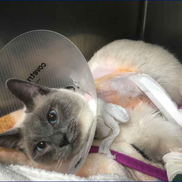 For Bundle, we prescribed courses of robenacoxib and gabapentin, advised dust-free litter, e-collar use and strict activity restriction for 6-8 weeks and set up recheck appointments at 3 and 6 weeks postoperatively.