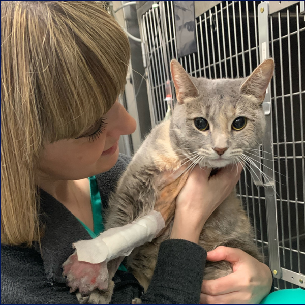 Case 3: Missy, 18-month-old domestic shorthair with an open wound at the level of the carpus