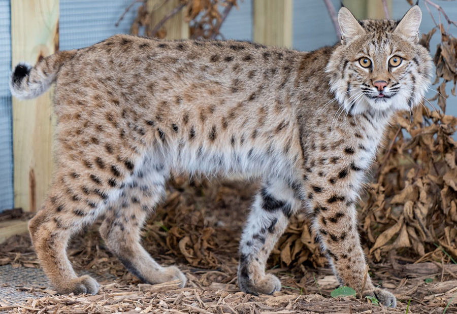 That nine-month process included initial confinement to a very small enclosure, then to a custom-built, low-ceiling crate with shelves and opportunities for mild climbing and jumping, and—eventually—transfer to a much larger cage, originally build to allow birds of prey to relearn how to fly. Throughout the course of rehabilitation, the bobcat’s caretakers transitioned him to high-energy food so he could regain strength, then introduced dead mice, birds, etc., to reacquaint him with a “wild” menu. Intermittent fasting was eventually introduced to evoke hunger and prepare him for similar episodes in the wild. Finally, live mice, birds, etc, were presented, requiring the bobcat to prove that he could survive by hunting—and he showed he could survive independently!