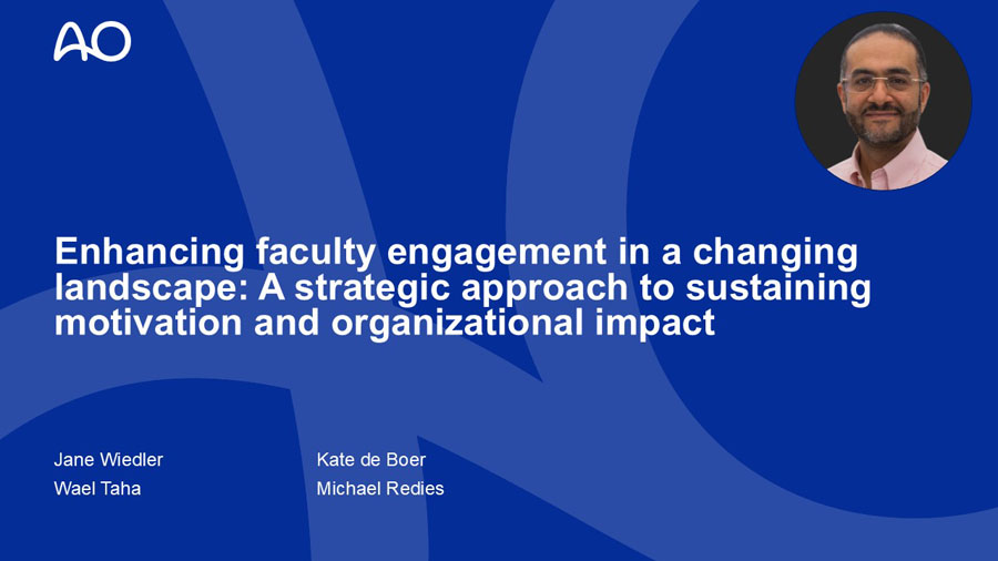 Education research ensures AO programs remain effective, is a key driver of innovation, and strengthens the AO’s leadership position to keep our education innovative, relevant, and impactful. This commitment was exemplified by the extensive medical education research contributions by AO faculty members as presented at this year’s International Association for Health Professions Education (AMEE) conference in Barcelona—the largest global medical education event.