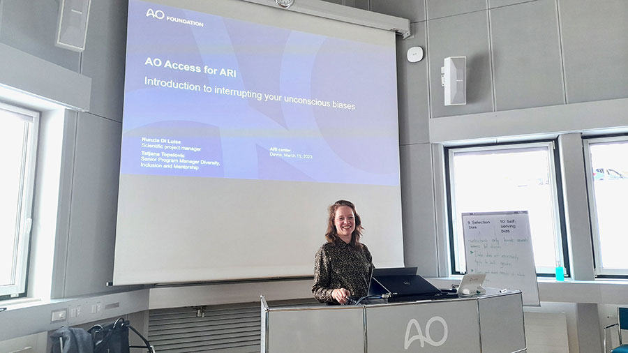 In March 2023, Tatjana Topalovic, Senior Program Manager of Diversity, Inclusion, and Mentorship at AO Foundation, and Nunzia Di Luise, the Gender Equality Officer at ARI, organized a workshop for ARI employees in leadership positions. The workshop was designed to be highly interactive with small groups discussing selected biases. The aim was to help participants learn more about the topic of diversity and reflect on their attitudes towards it in the workplace.