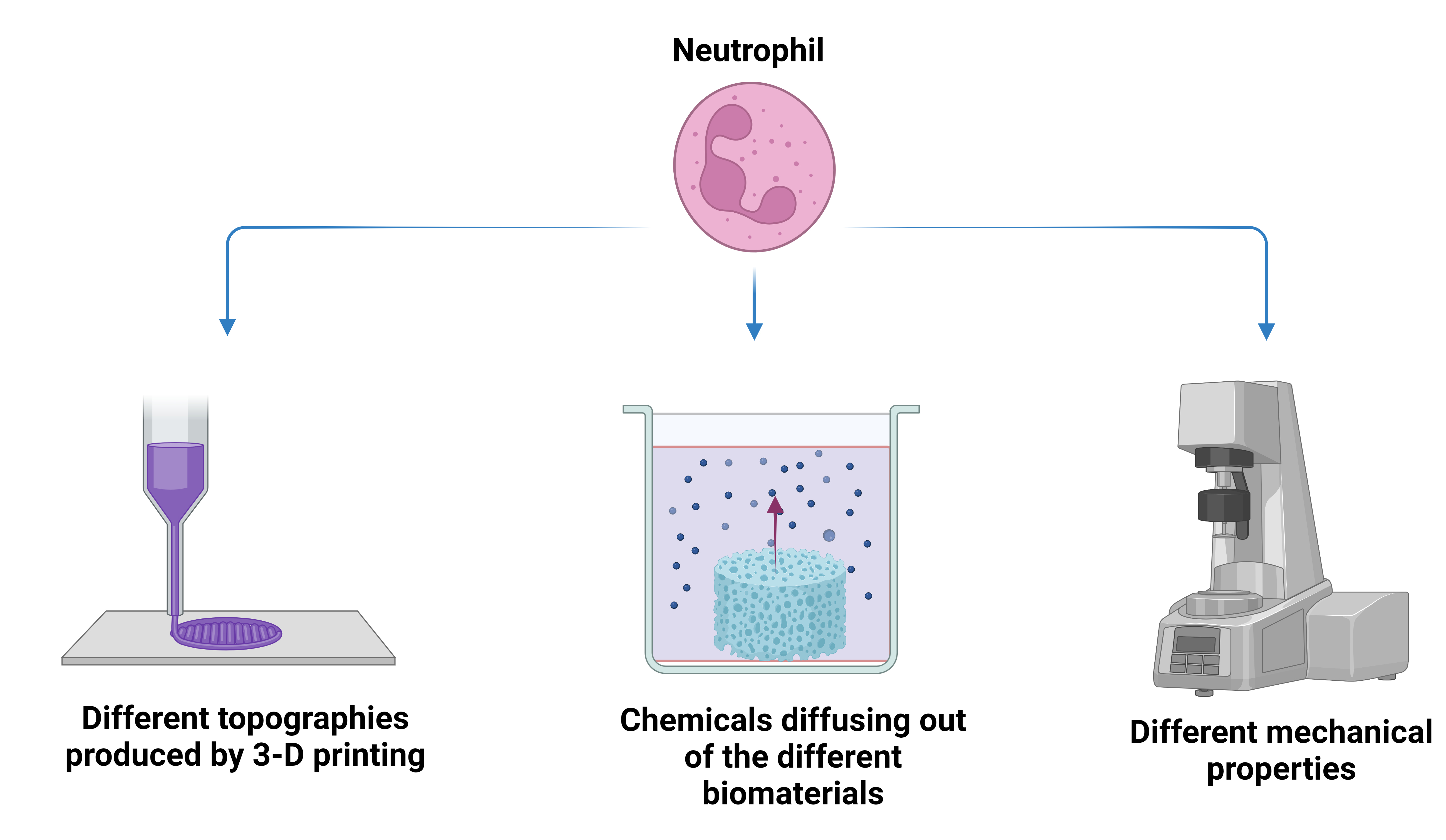 The purpose of this project is to establish how biomaterial composition, mechanical properties, and topographical features influence neutrophils inflammatory profile and phagocytic activity. In a broader context, with this project we are aiming to contribute towards establishing principles on how to design biomaterials priming a neutrophil response avoiding chronic inflammation.