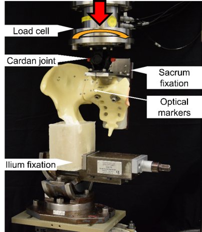 Twenty-seven artificial pelves with discontinued symphysis and a vertical osteotomy in zone 1 after Denis were assigned to 3 study groups, fixed with either a transsacral screw, a SI screw, or the new screw-in-screw implant, and biomechanically tested using validated setup and test protocol for application of complex axial and torsional loading to failure. Interfragmentary movements and implant motions in terms of pull-out, cut-through, tilt, and turn-out were significantly higher for SI screw fixation compared to both transsacral screw and screw-in-screw fixations. In addition, transacral screw and screw-in-screw fixations revealed similar construct stability. Moreover, screw-in-screw fixation successfully prevented turning-out of the implant, that remained at 0° rotation around the nominal screw axis during testing for all specimens.