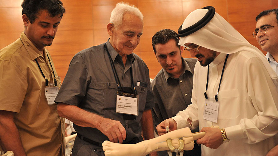 After his retirement in 1984, Guggenbühl moved to Dubai, United Arab Emirates, to act as AO delegate; he managed a large state trauma clinic there until 1995. In those years, he actively participated in various AO courses in the Middle East and the United Arab Emirates. Guggenbühl, Müller, and Walter Stähli attended the AO's 50th anniversary in 2008. He passed away in 2009.