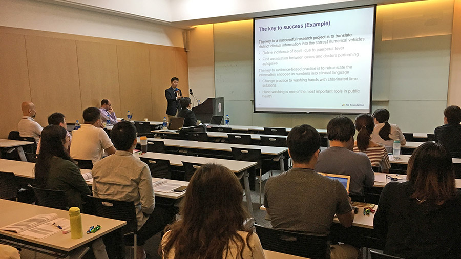Designed by surgeons, for surgeons, AOPEER is a collection of resources, reference documents, and learning opportunities designed for health care professionals who want to learn or improve the skills they need to conduct clinical research. In the Taipei courses, organized by the AOPEER back office at AO Clinical Investigation and Documentation (AOCID), participants learned about the importance of research and evidence-based medicine (EBM), the relevant ethical considerations and guidelines for Good Clinical Practice (GCP) with a focus on the formulation of a clinical research question. Additionally, the courses offered support in working with statisticians and navigating the AOPEER platform to ensure research success.