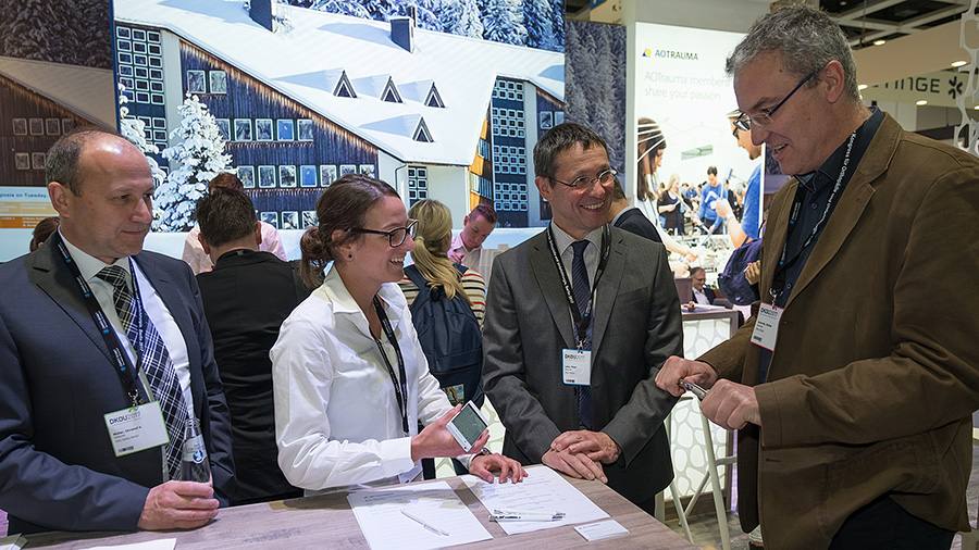 The AO booth is your home from home at DKOU. Grab a coffee, find out about AO opportunities in your fields, and learn more about how the AO today works to improve patient care. Test your arthroplasty skills with our AO Recon online game and get a taste of the AO Recon Skills Lab. One of the stations, alignment of the tibial cut, will be exhibited all day Thursday at the AO booth (hall 2.2 booth 20) and showcased by Philipp von Roth from 12:45-14:15. Also at the AO booth: experience the AO Fracture Monitor–an implantable biofeedback sensor device that measures fracture healing status and patient activity.