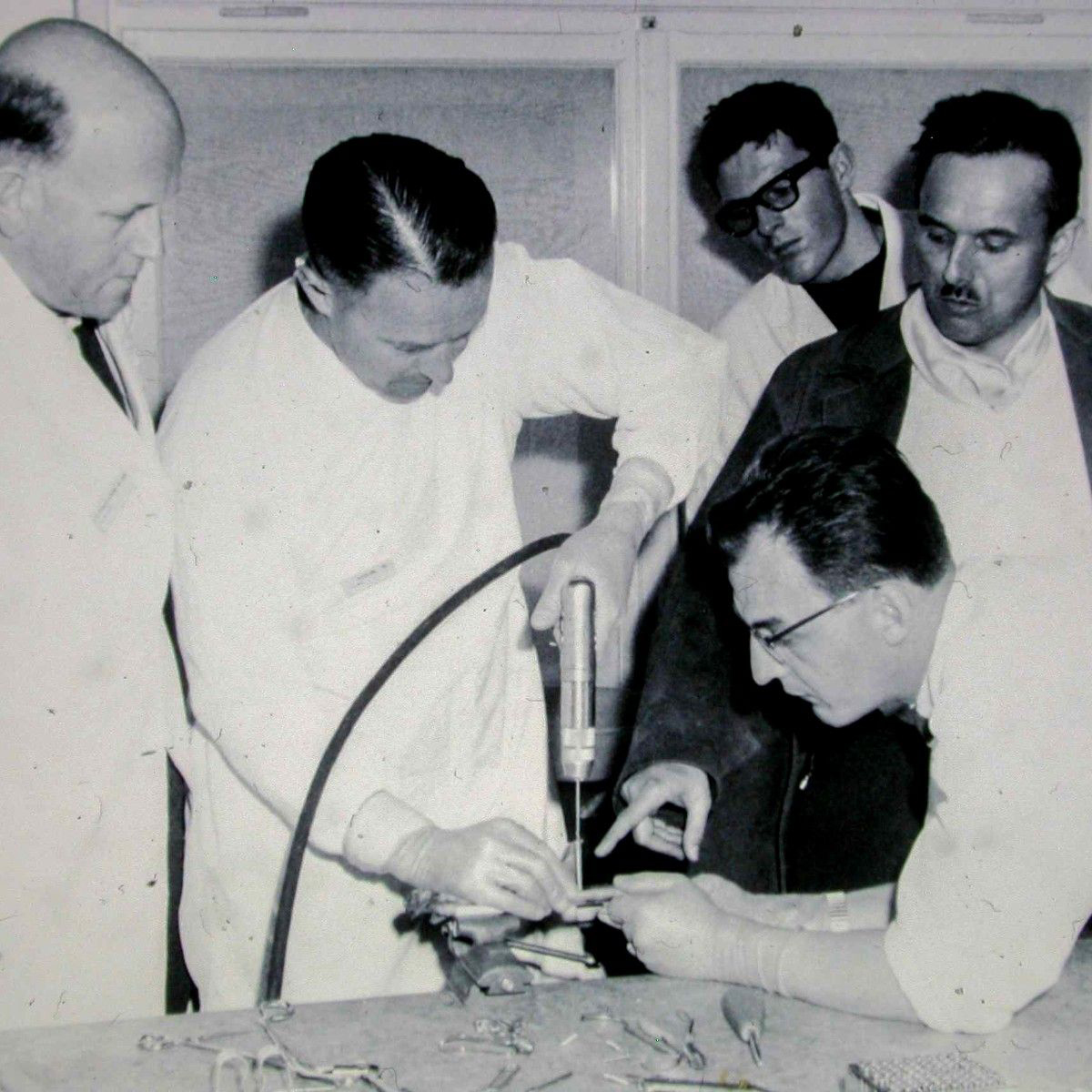 The history of the AO and Balgrist University Hospital has long been intertwined: AO founding father Maurice E Müller was chief resident at the hospital from 1952–57, and that’s where he met fellow AO co-founder Fritz Brussatis—the only non-Swiss founding member of the AO—who, as a neurosurgeon at the hospital, instructed Müller in disc surgery.