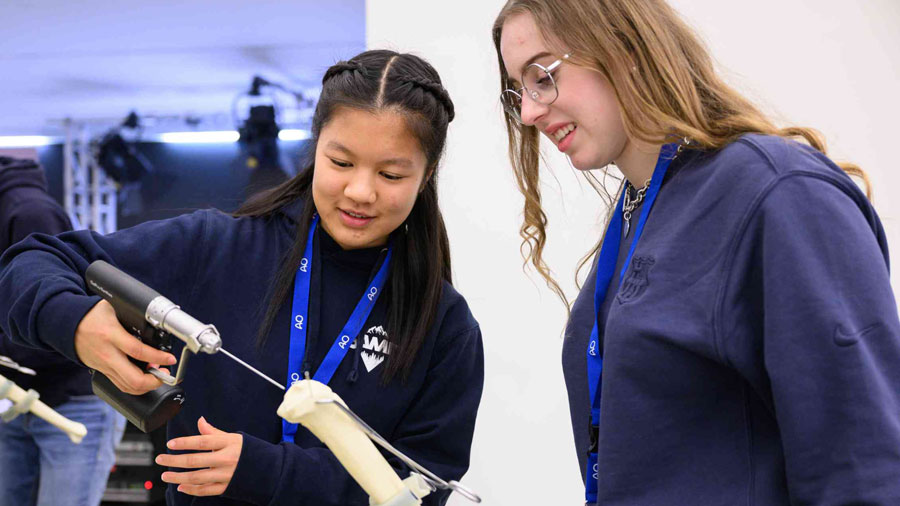 The SAMD visits of the AO Davos Courses are part of a long-standing tradition. Two SAMD classes had already visited the AO Center and the Spital Davos beforehand. During a guided tour of the AO Research Institute Davos, the students were given an insight into research. A week later, they visited the hospital to learn more about the history of osteosynthesis. In the “skills lab”, a training room, they explored the craftsmanship and finesse of surgery with Peter Däscher, Senior Project Manager Education Platforms & Implementation at the AO.You might also be interested in:
