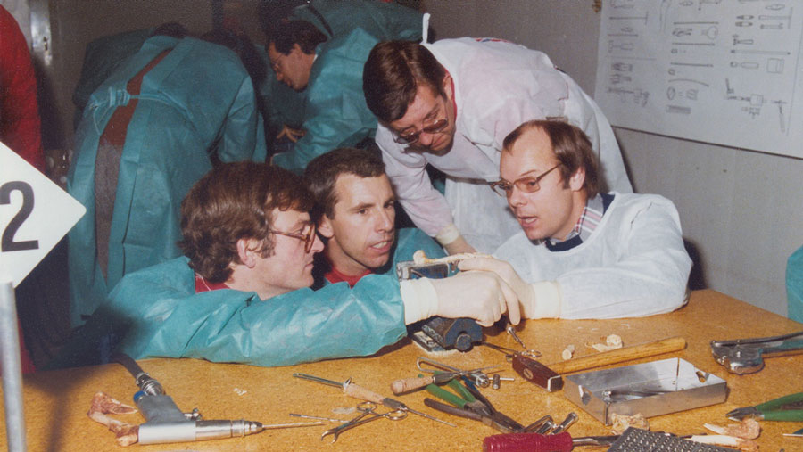 In 1960, the first AO course was held at the Laboratory for Experimental Surgery. 69 surgeons gathered in Davos for a four-day program to learn techniques that were considered experimental at the time—internal fixation using plates and screws. Only surgeons who had participated in the course were allowed to purchase the first set of AO instruments. The event marked the beginning of the AO’s flagship educational tradition.
