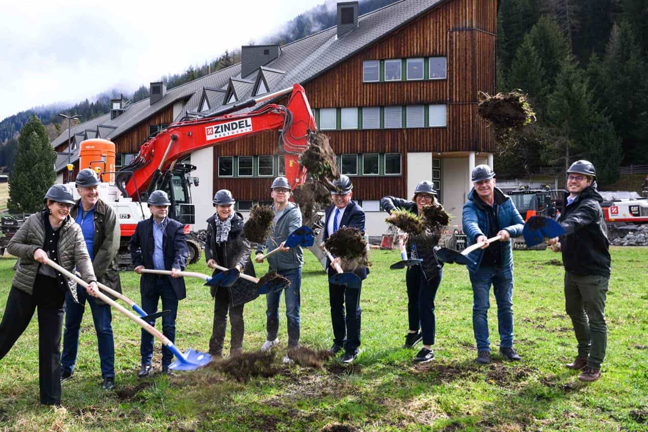 Today, the sun shone down on the building site where the AO’s Science Circle will rise over the next two years in Davos, Switzerland. Representatives gathered from the AO’s leadership, Gemeinde Davos, and architecture firm Architektur 41; they put on hard hats, and, with shovels in hand, they took the first ceremonial scoops of earth to break ground on this significant building project.